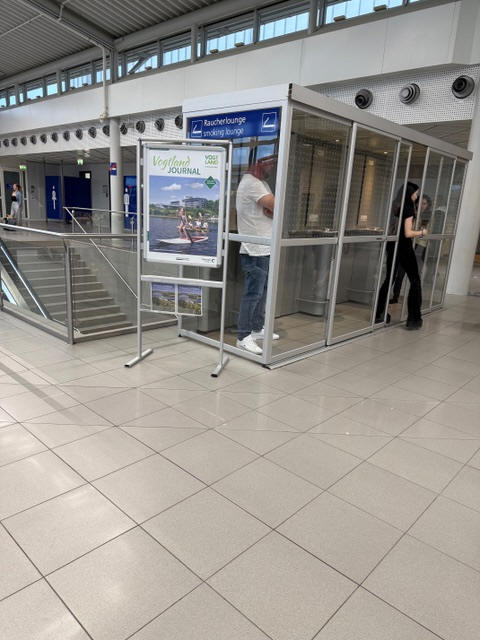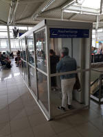 From Lutz on the 3rd July 2019: Raucherbereich/Box im Terminal nach Sicherheitscheck direkt am Terminal 14 ( Smoking area in the terminal after security check directly at Gate 14).