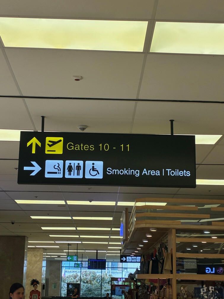 One smoking area near gate 10. No Seats (Terrace). Good signs