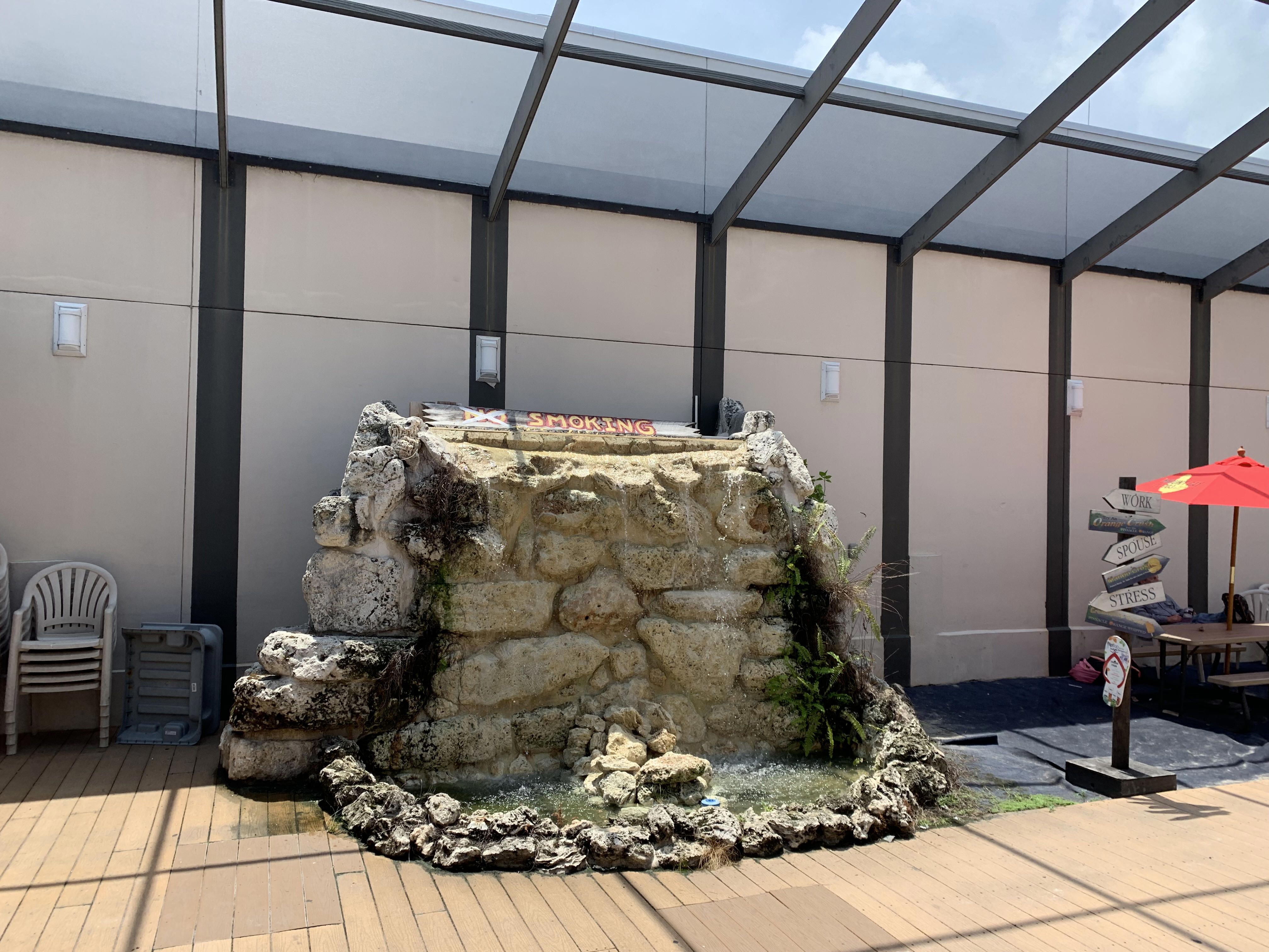 chairs and even a water fall. Best smoking I’ve seen yet. Pics