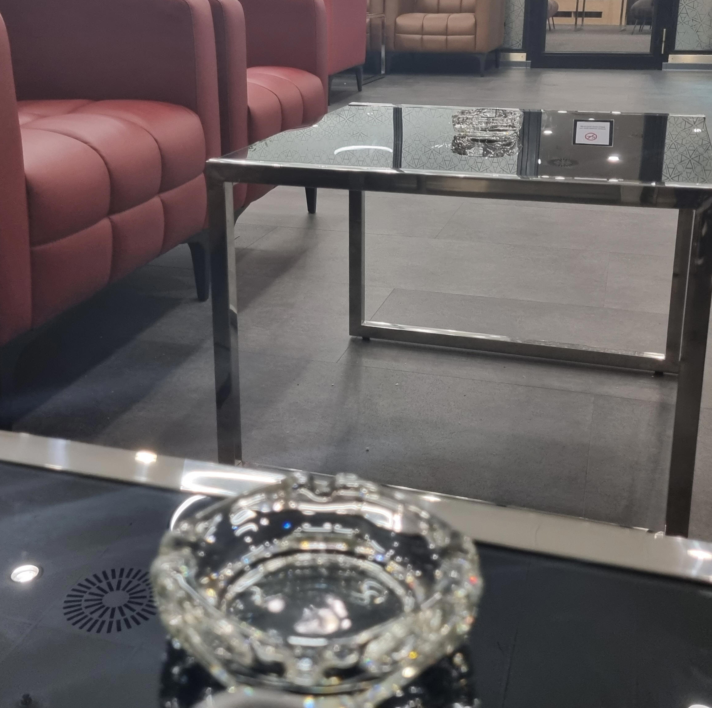 Update from, July 2022: Preslav Lounge in T2 has been renovated. The smoking room now shows a No Smoking sign stating "electronic smoking devices only". However there are ashtrays on the tables and people are still smoking real cigarettes.