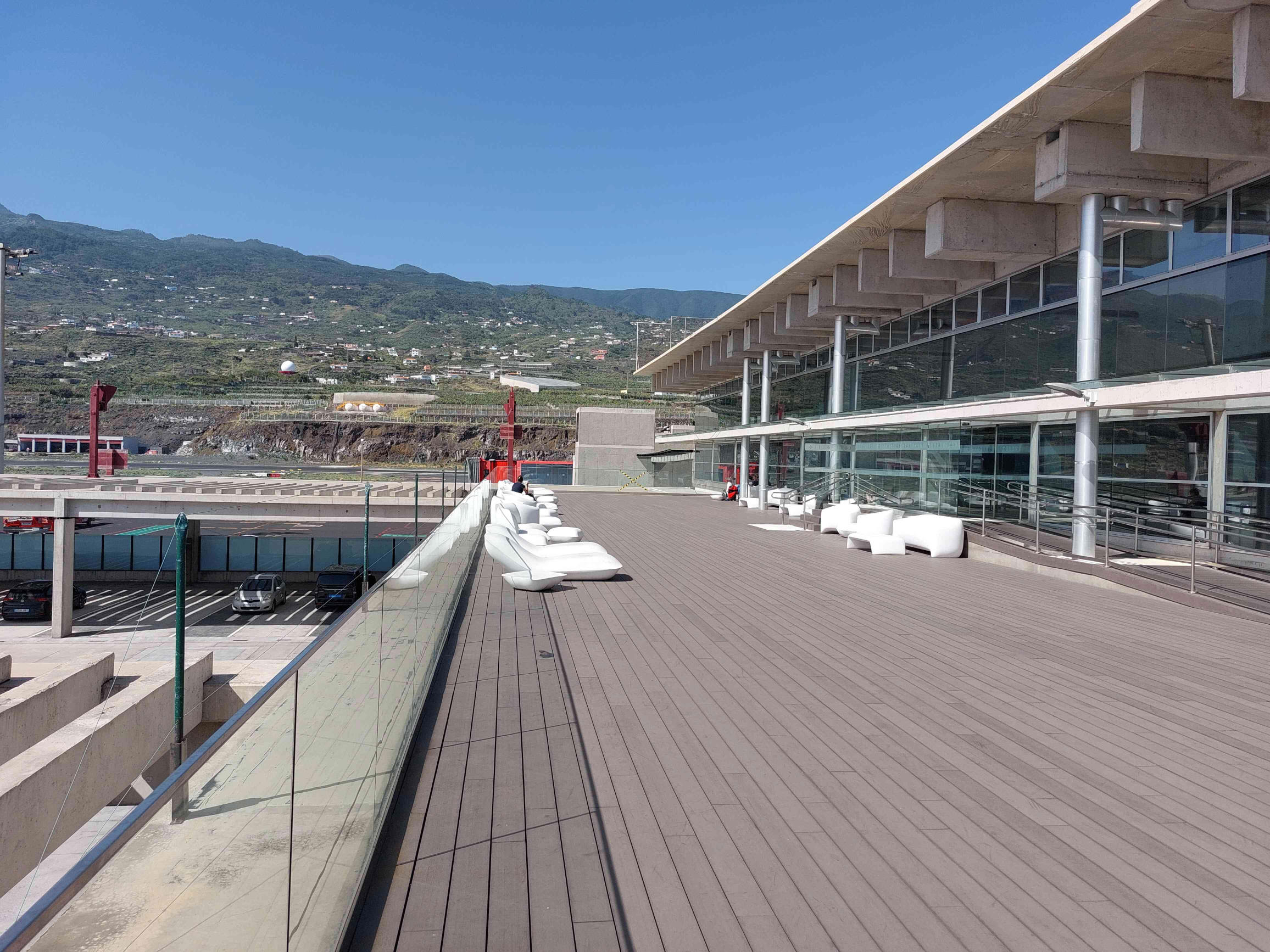 Update from Fernando P:, Aug 2019: I’m currently at the Santa Cruz de La Palma airport (SPC), in the Canary islands, expecting a few hours of not smoking, however, I’m glad to comment that there’s a terrace not mentioned in your website. It’s located after the security control, and it’s not only big, but it enjoys from beautiful views of both the mountains and the sea. Please see attached a few pictures I just took.